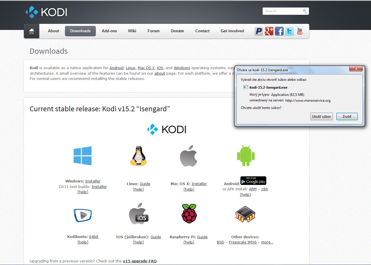- Najprv je potrebné s oficiálneho webu stiahnuť inštačný balíček pre daný operačný systém. Takže klikneme na Windows instaler a následne dáme súbor uložiť. Inštalčný balíček ma asi 67 MB.