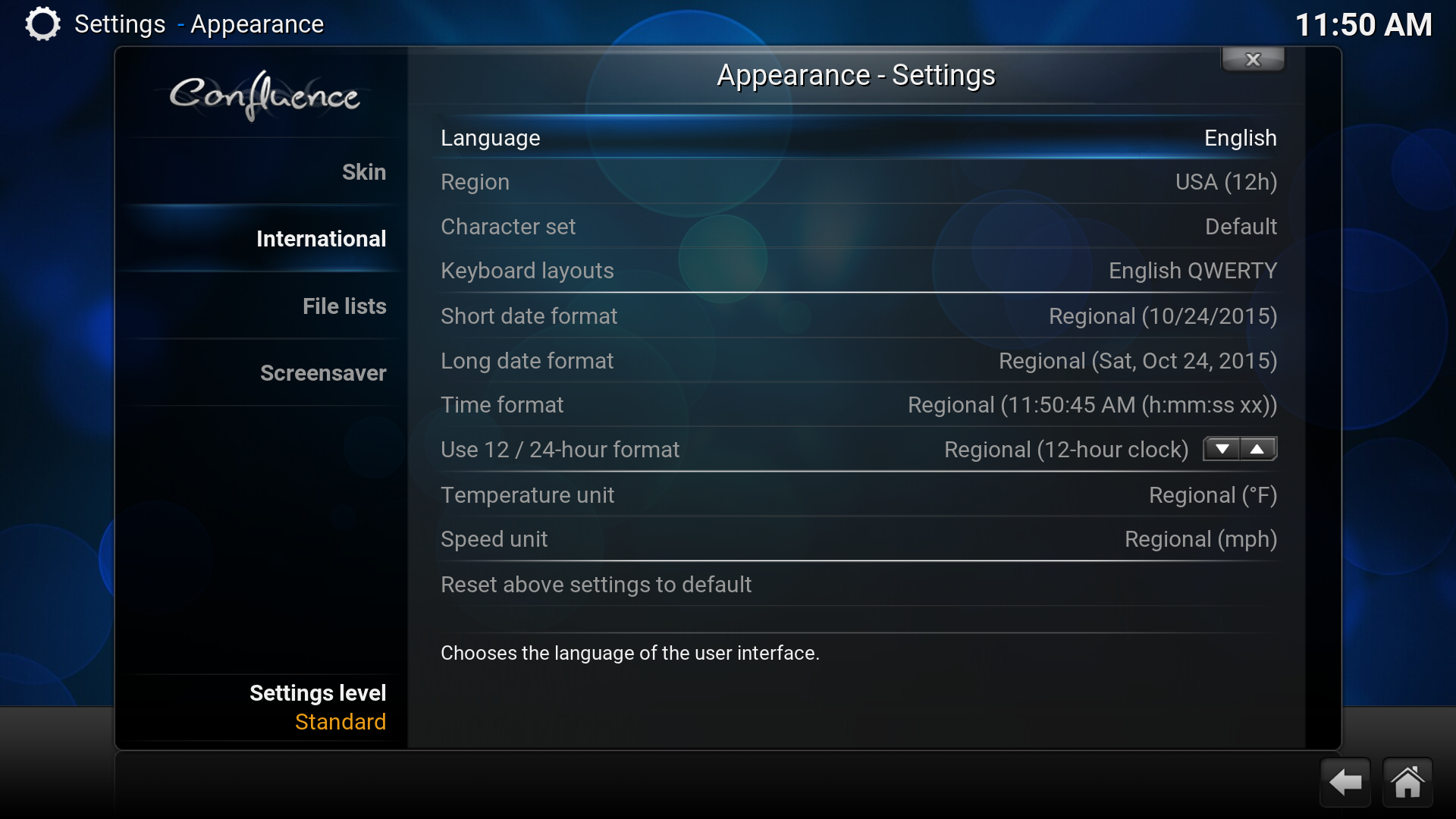 - V Appearence-Settings prejdeme na položku "international" -->> "Language" a potvrdime.