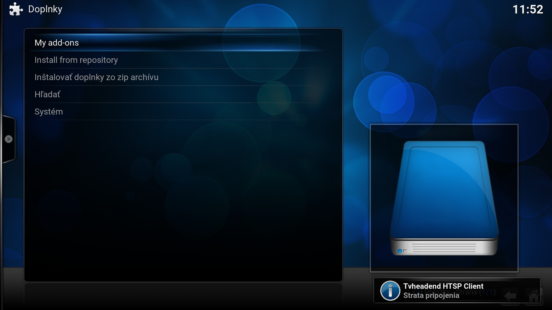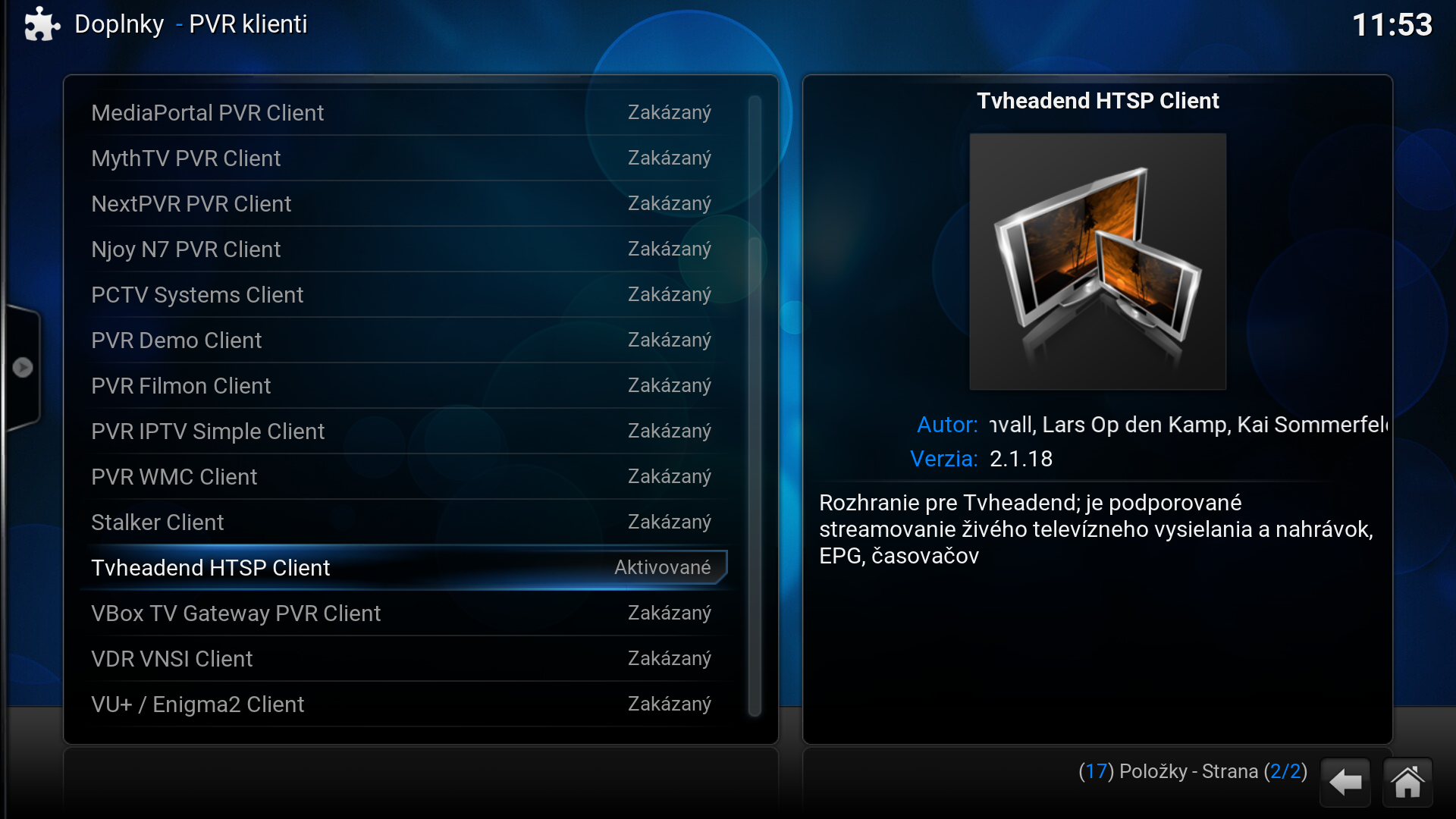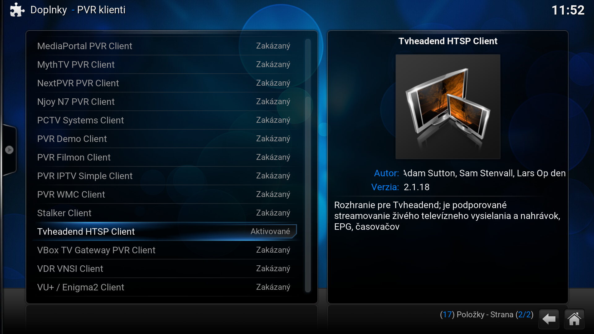- V "My add-ons nájdeš položku "PVR klienti" a potvrdíš enter.