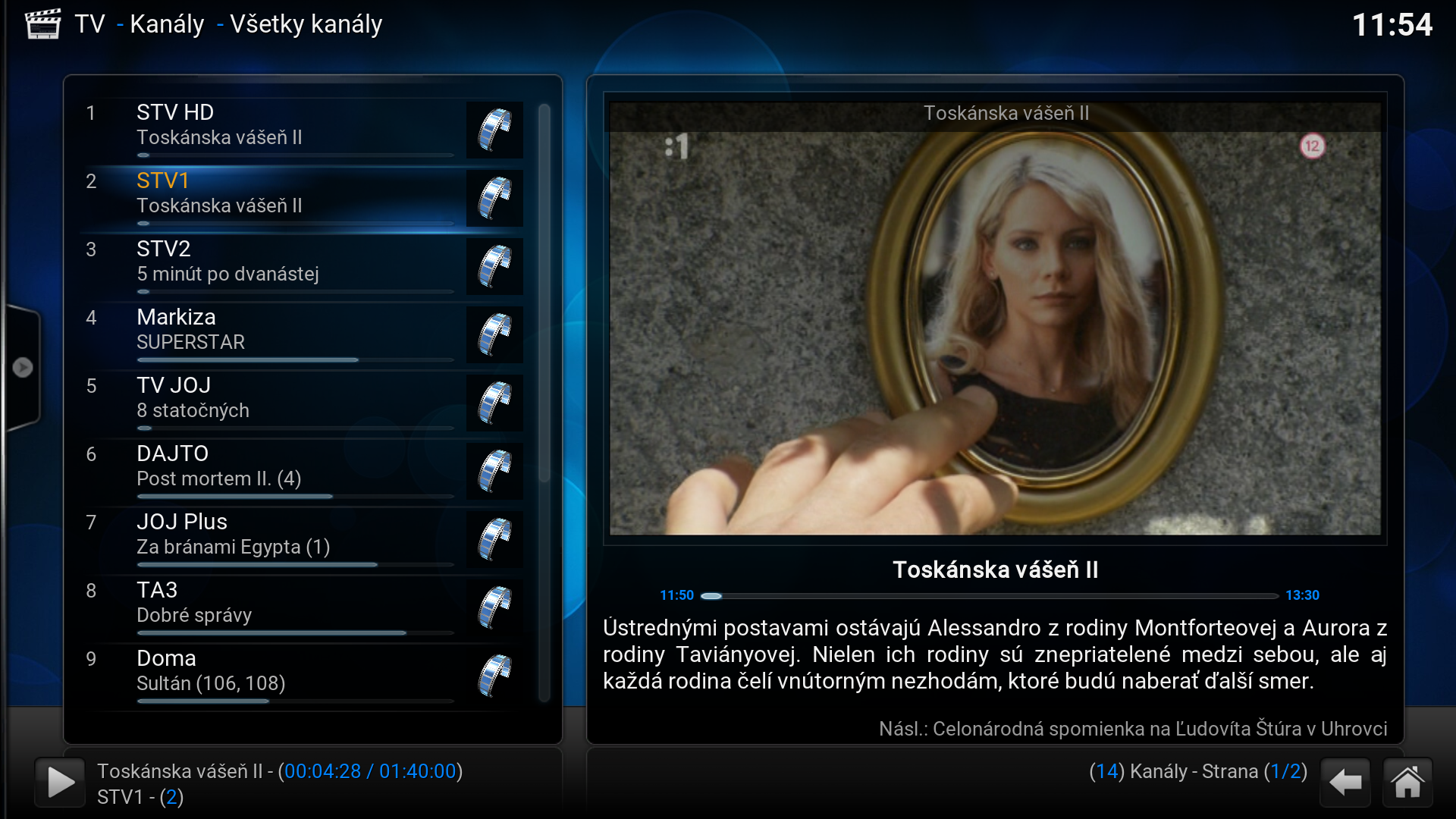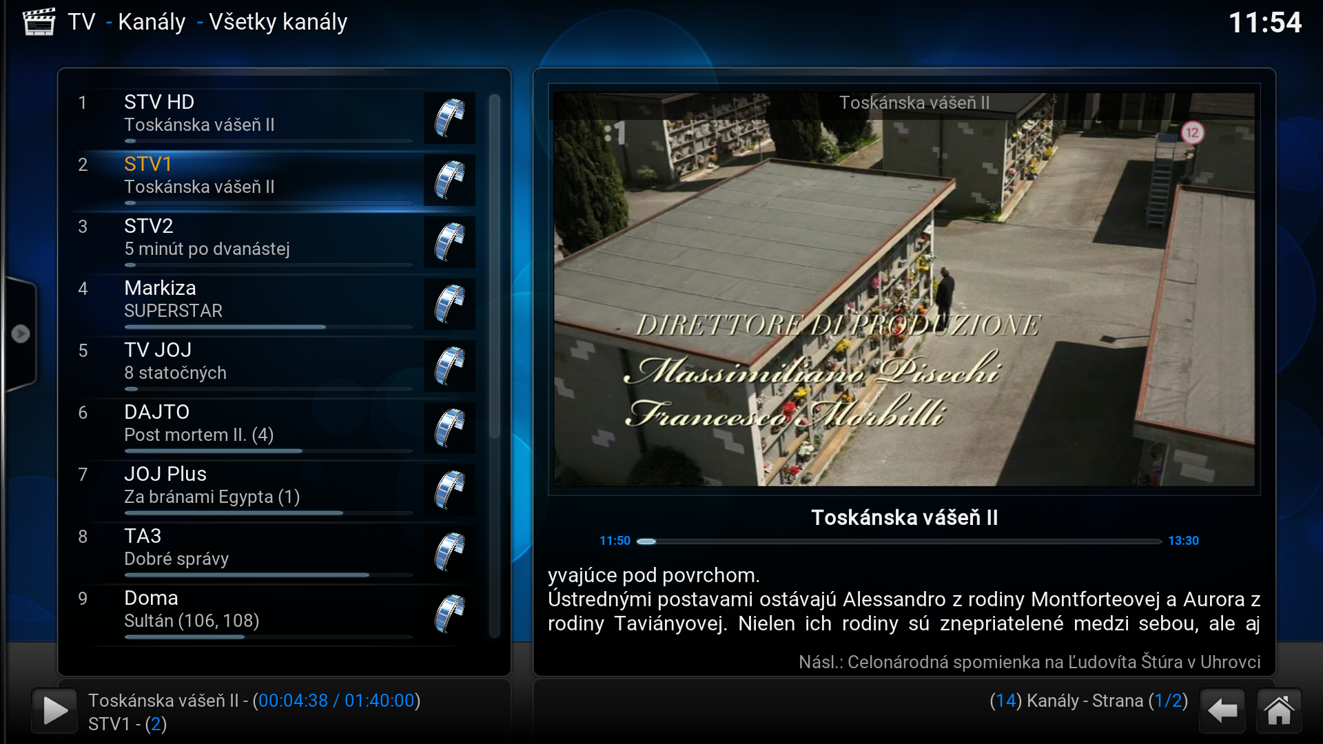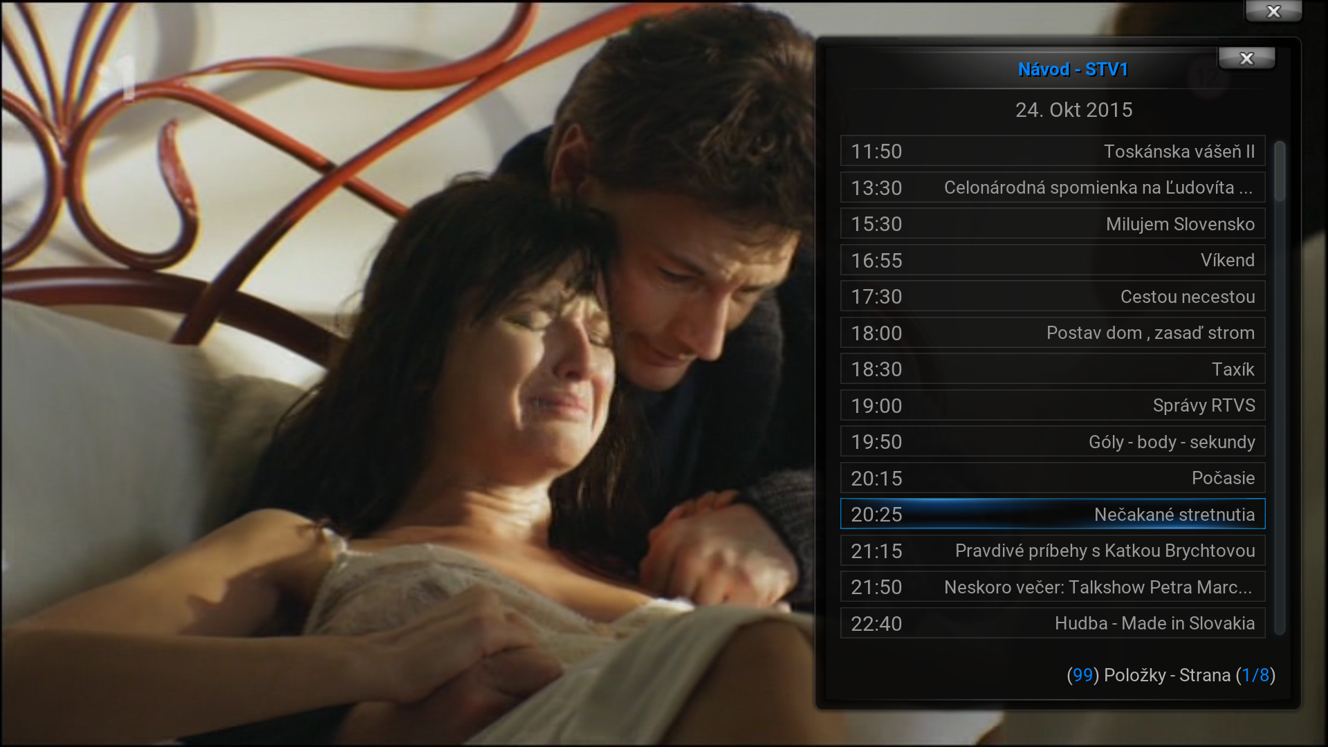 - V tejto chvíli by si už mal vidieť zoznam kanálov, ktoré si KODI stiahol od PVR klienta.