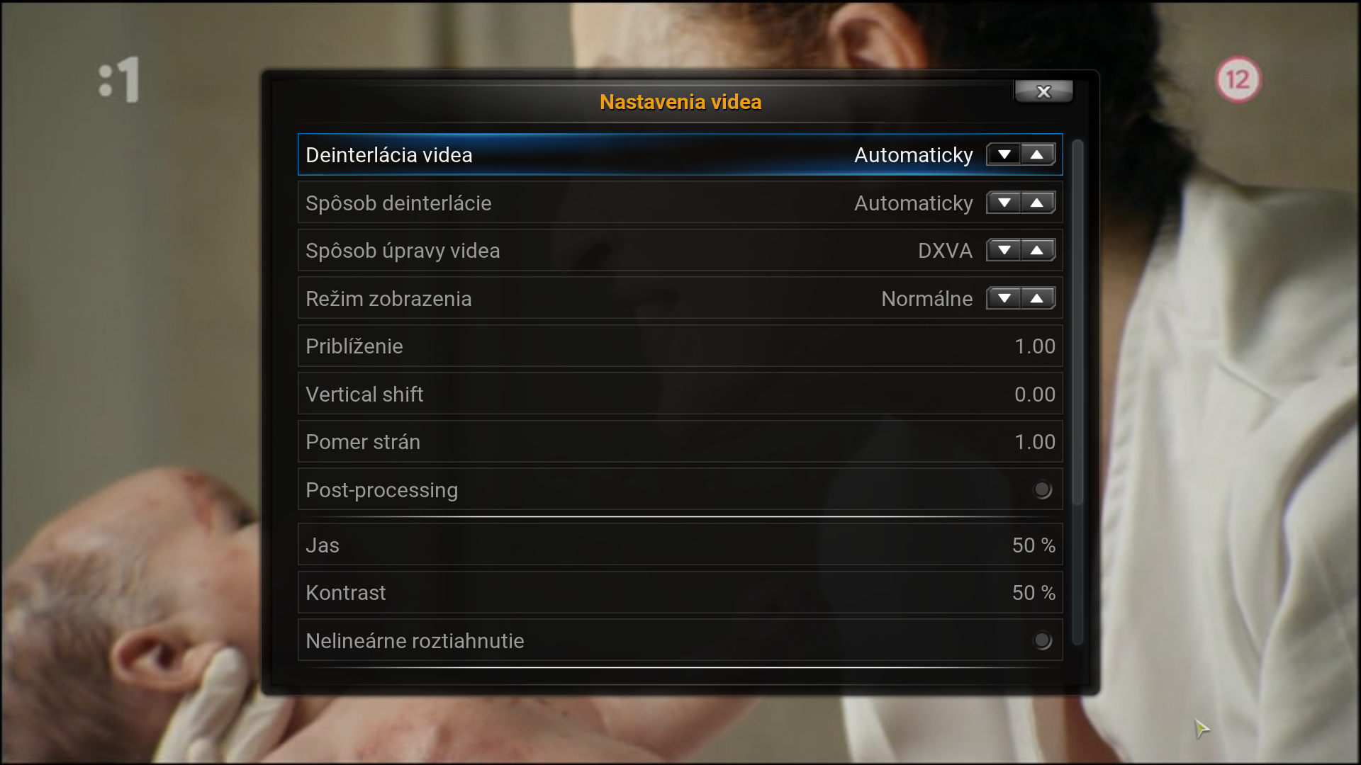 - V možnosťiach pre video je možné upraviť prekladanie videa (ak je obraz prekladany, treba deinterláciu videa nastaviť na "Automaticky")