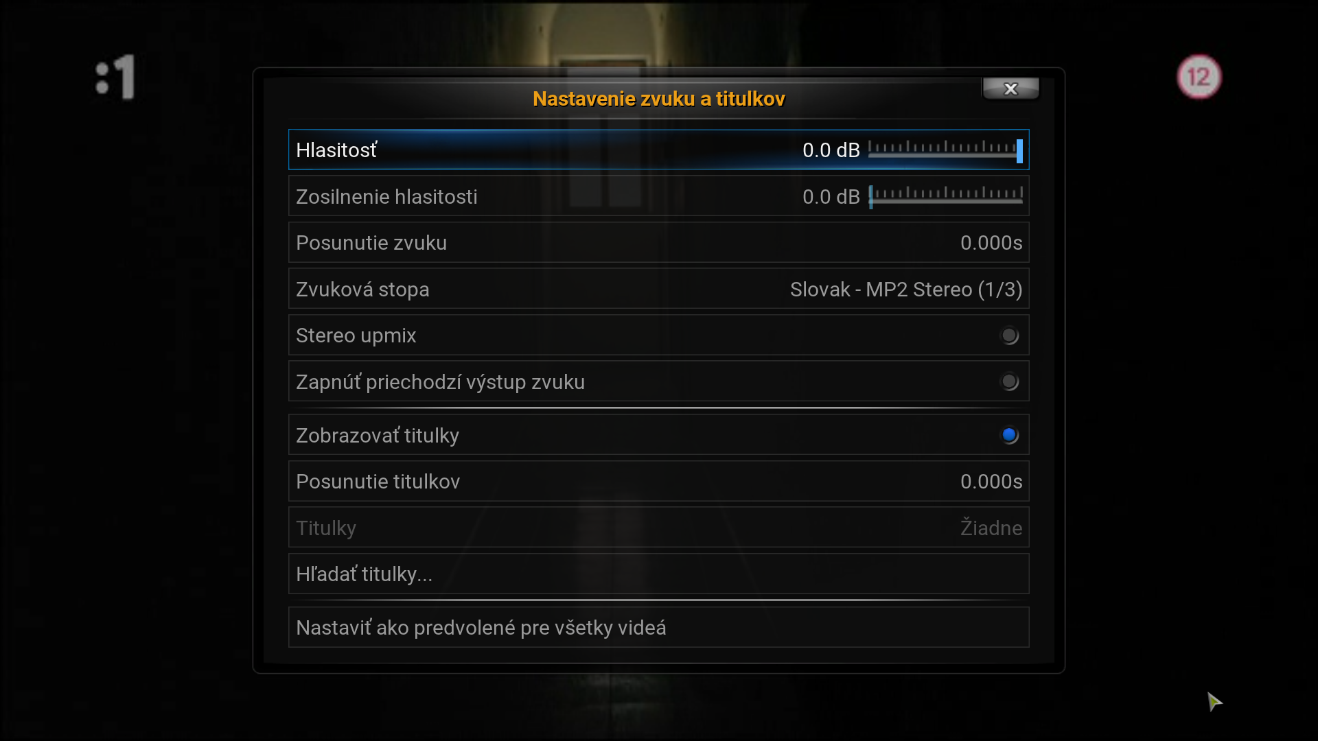 - V možnostiach pre audio je možné meniť zvukové stopy, povoliť titulky a pod.